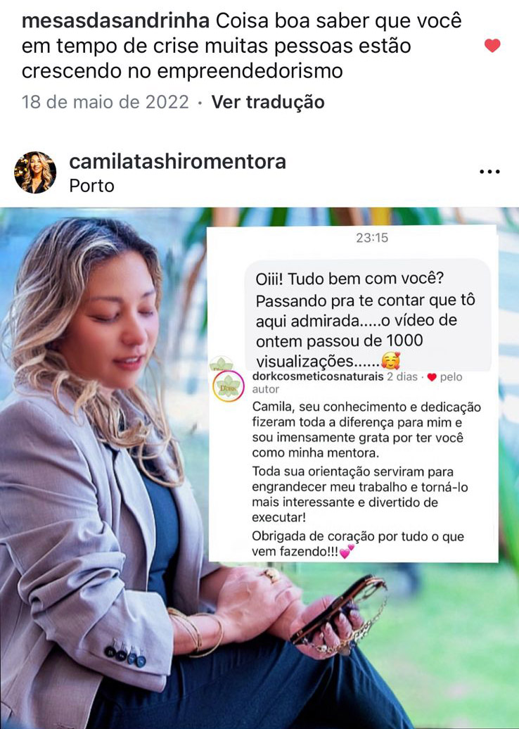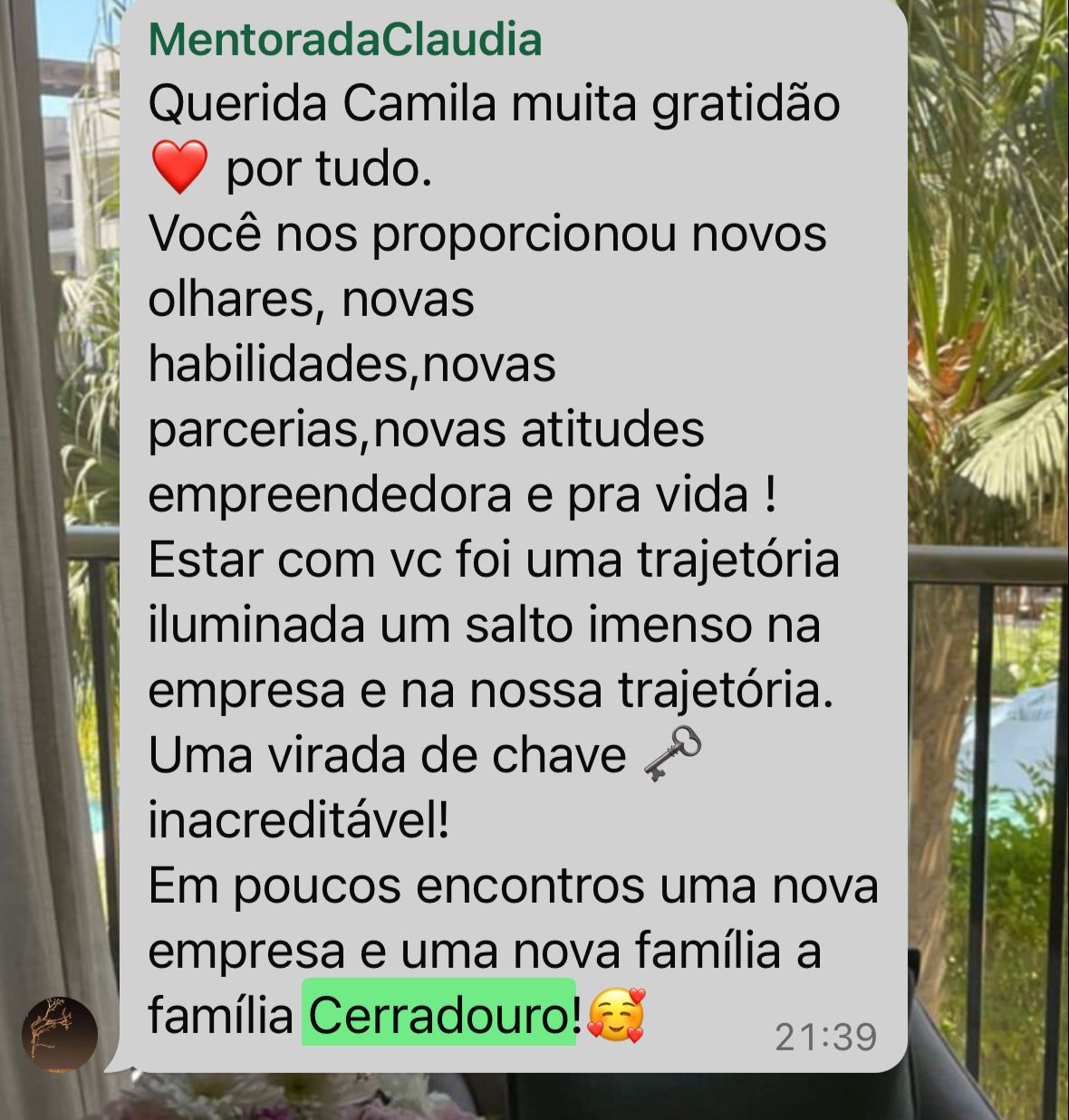 Acesso direto ao WhatsApp da mentora para suporte contínuo.